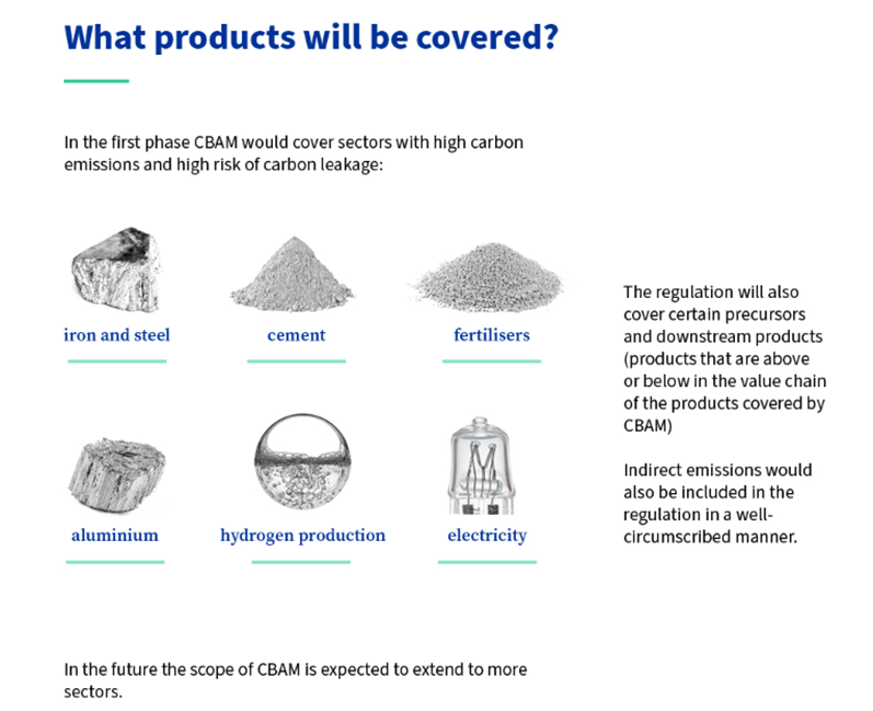 A Carbon Border Adjustment Mechanism (CBAM), más néven "karbontarifa", olyan országokra vagy régiókra vonatkozik, amelyek szigorúan végrehajtják a szén-dioxid-kibocsátás csökkentését, és megkövetelik a magas szén-dioxid-kibocsátású termékek importját (exportját) a megfelelő adók vagy szén-dioxid-kvóták megfizetése (visszaküldése) miatt.